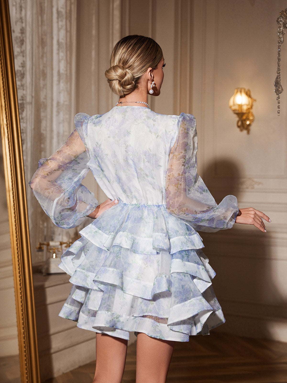 Afroditi Floral Printed Ruffle Mini Dress