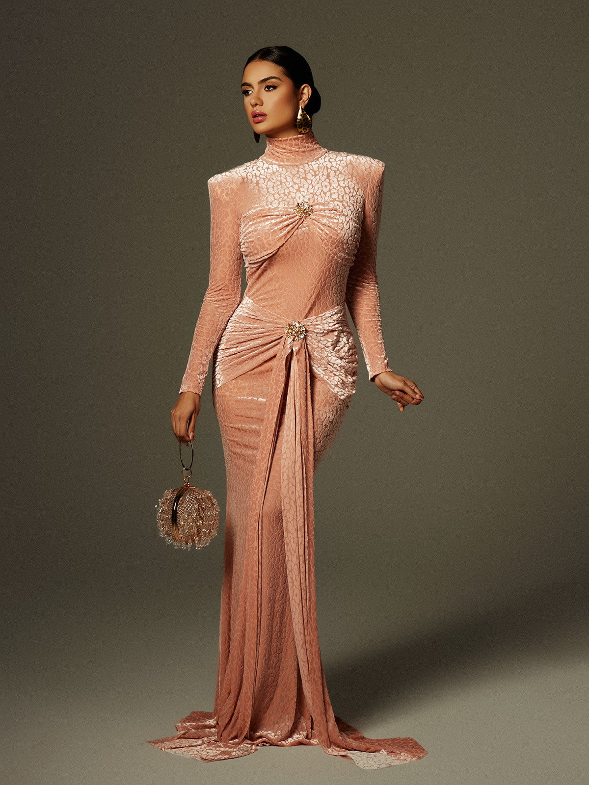 Ahuva Leopard Printed Rhinestone Maxi Dress