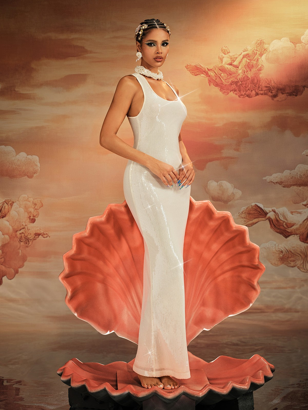Sparkle and shine in our Akanji Plunge Neck Sequin Maxi Dress! This show-stopping dress features a plunging...