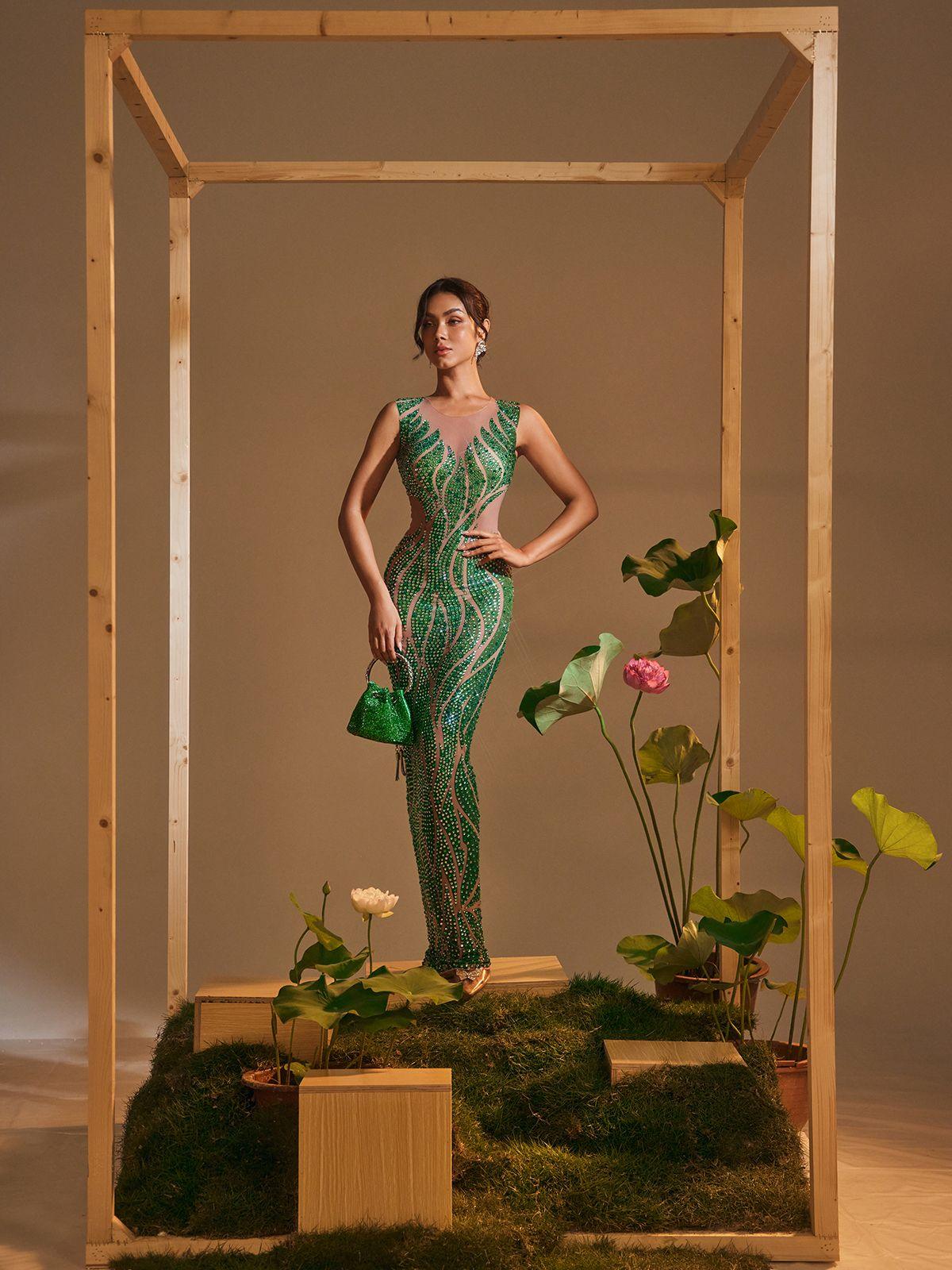 Introducing the Anabia Round Neck Printed Rhinestone Maxi Dress! This stunning dress features a round neck design...