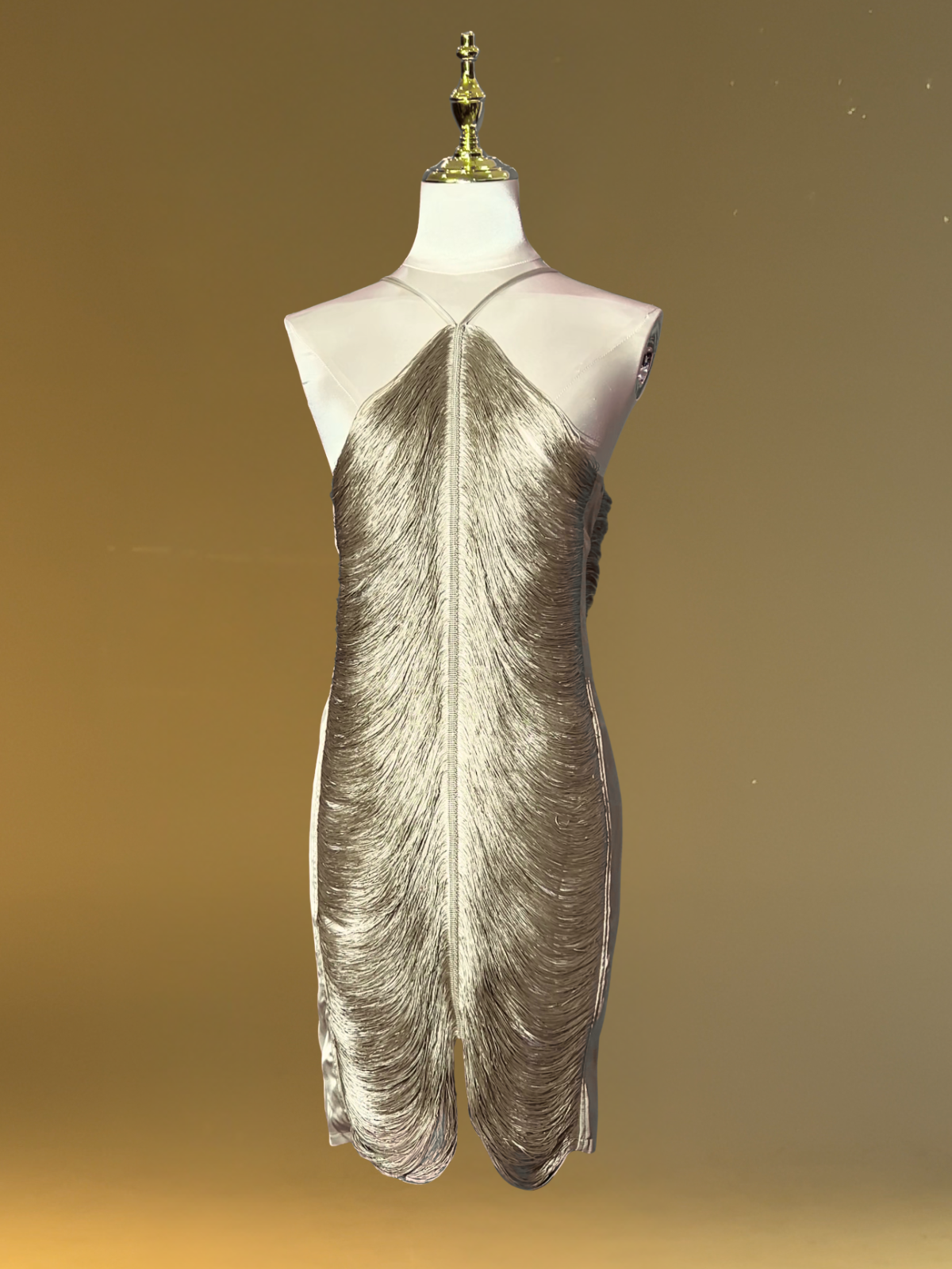 Bluma Halterneck Fringe Mini Dress In Olive
