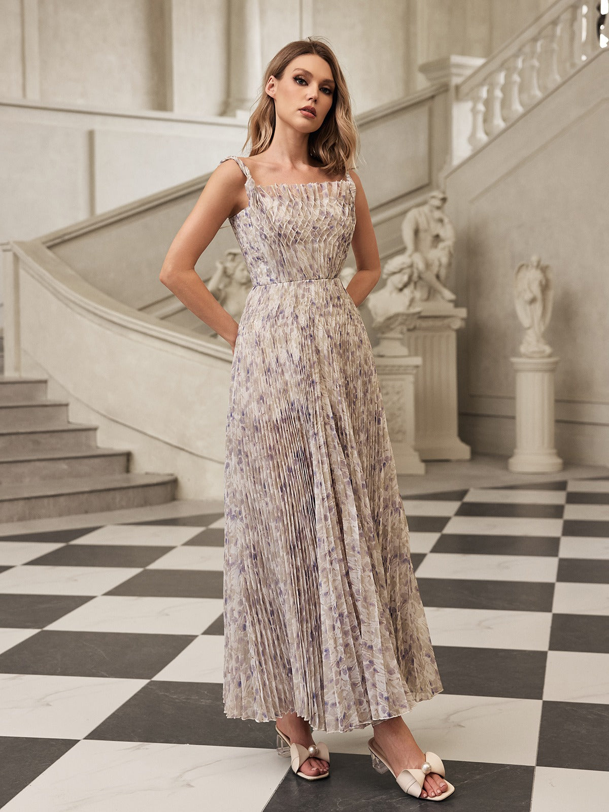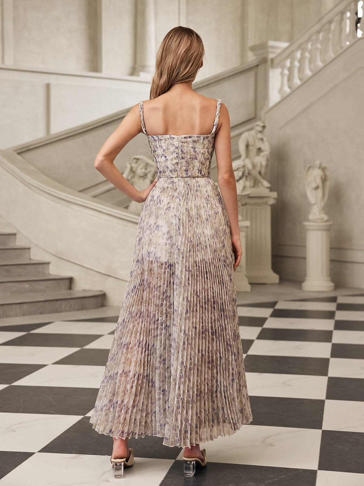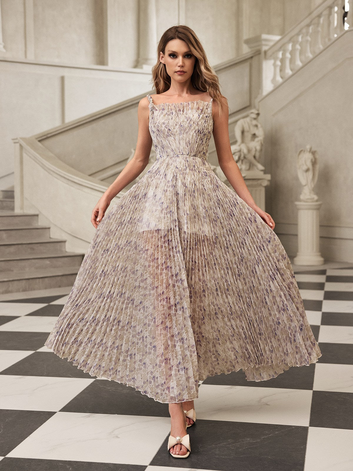 Gaeris Spaghetti Printed Pleat Maxi Dress
