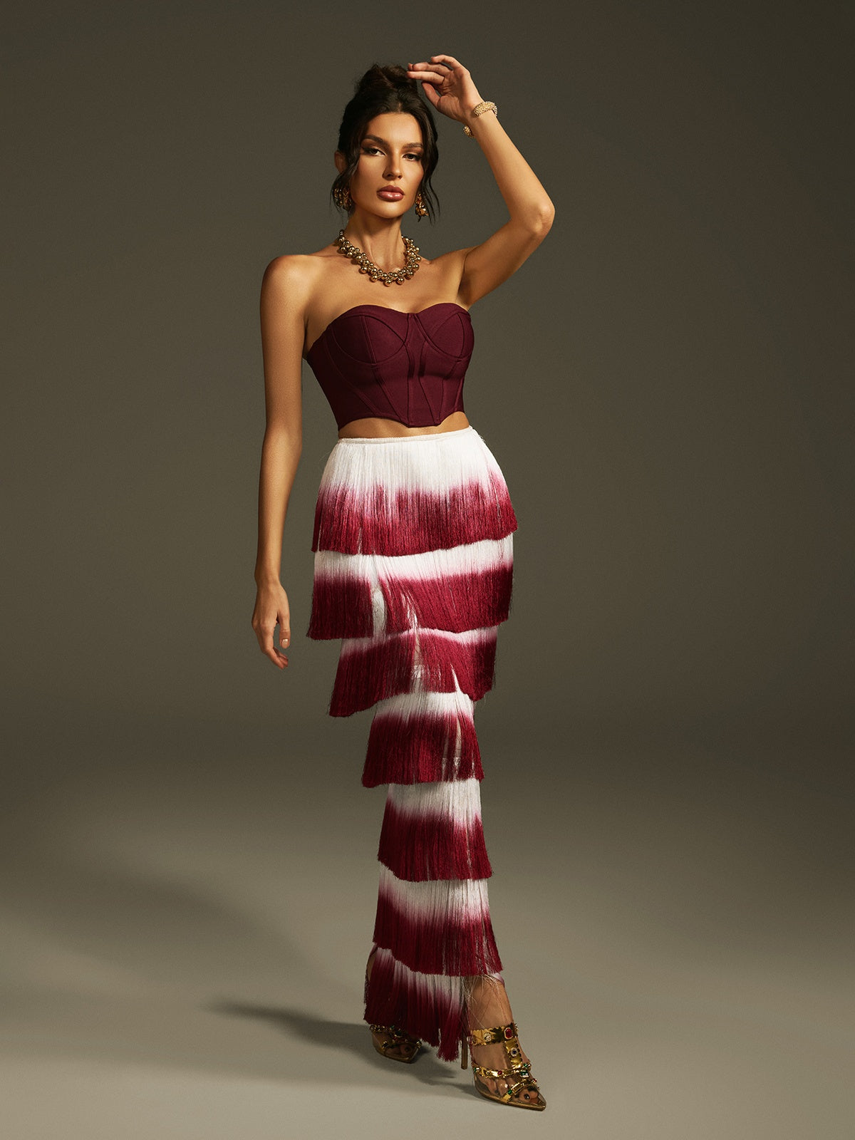 Elevate your style with the Landers Ombre Fringe Skirt Set. featuring a stunning gradient design that effortlessly...