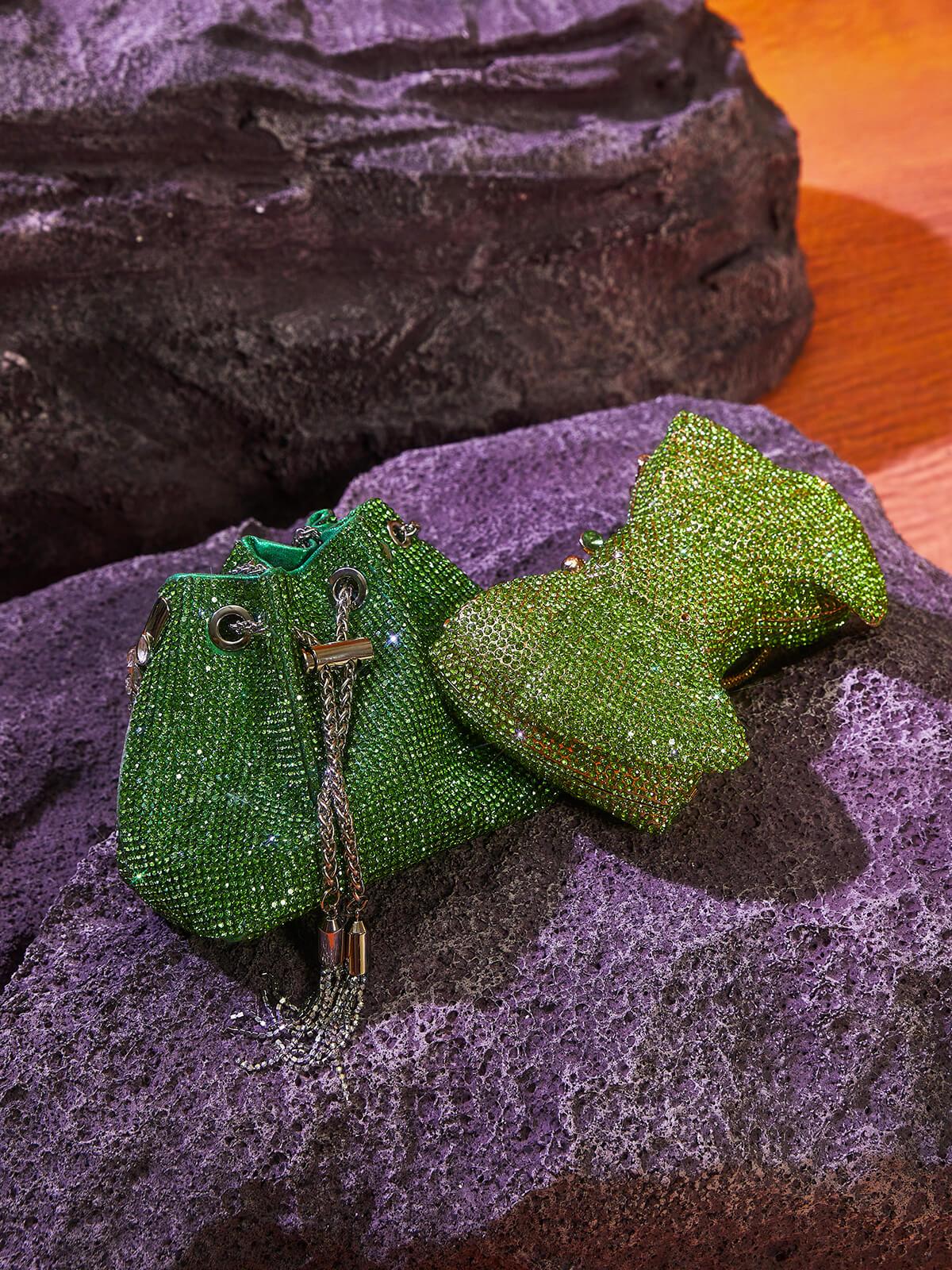 Our signature Mattea Crystal Embellished Bucket Bag In Green is crafted from hot pink crystal. A statement...