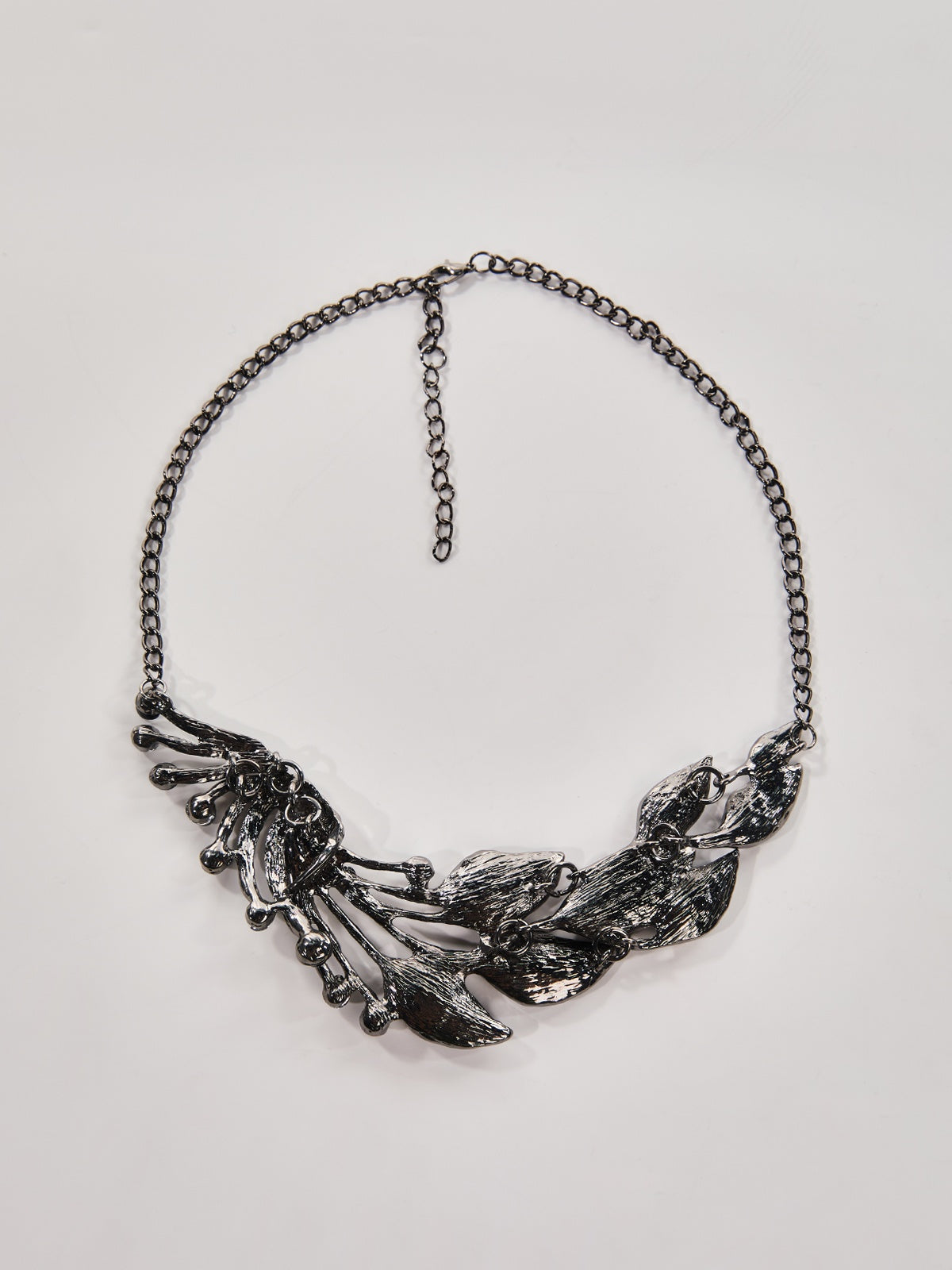 Elevate your style with the Naelin Peacock Tail Necklace in Grey. This elegant piece features a delicate...