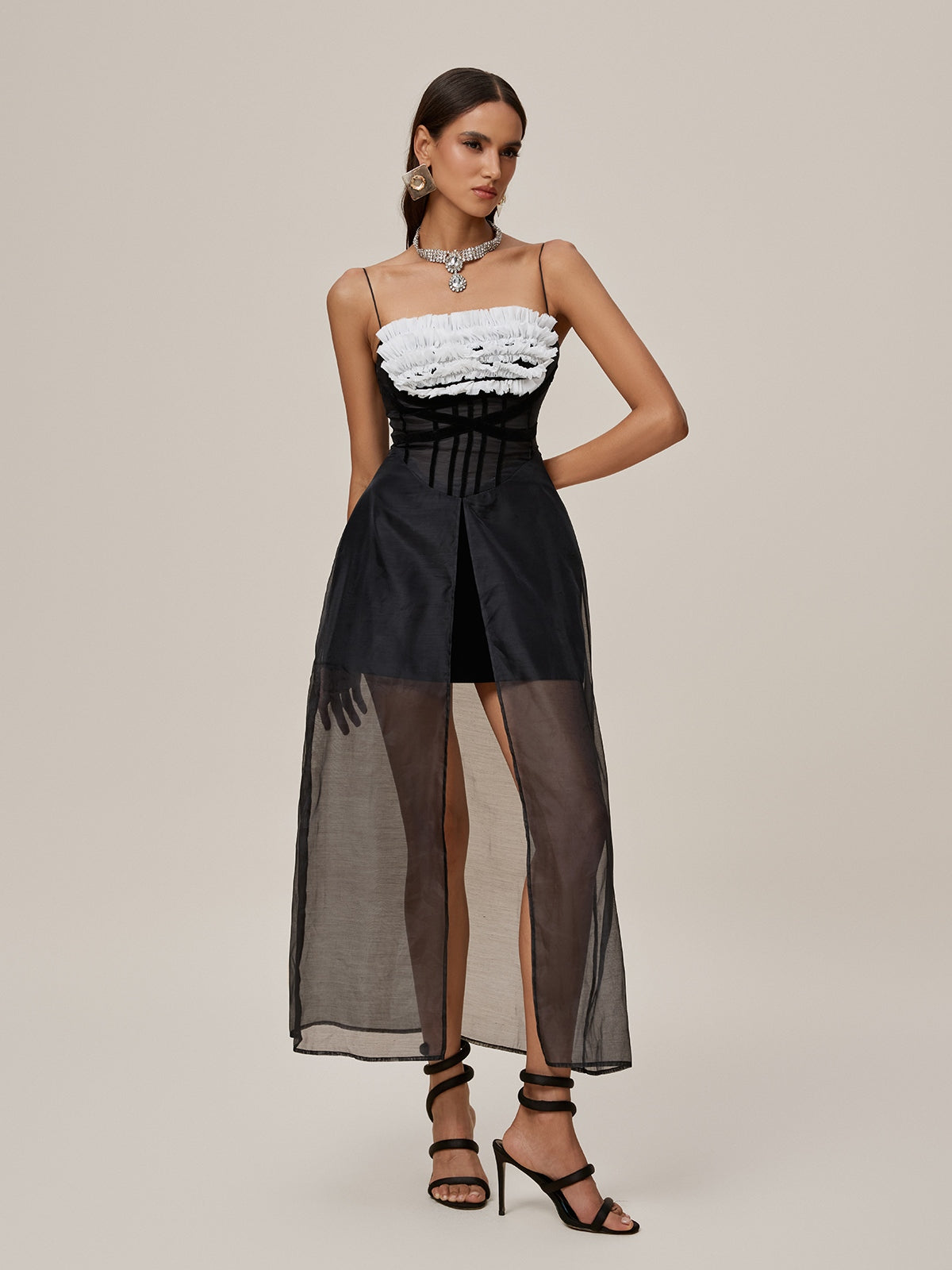 Elevate your wardrobe with the Onofre Spaghetti Mesh Split Maxi Dress. Featuring delicate spaghetti straps and a...