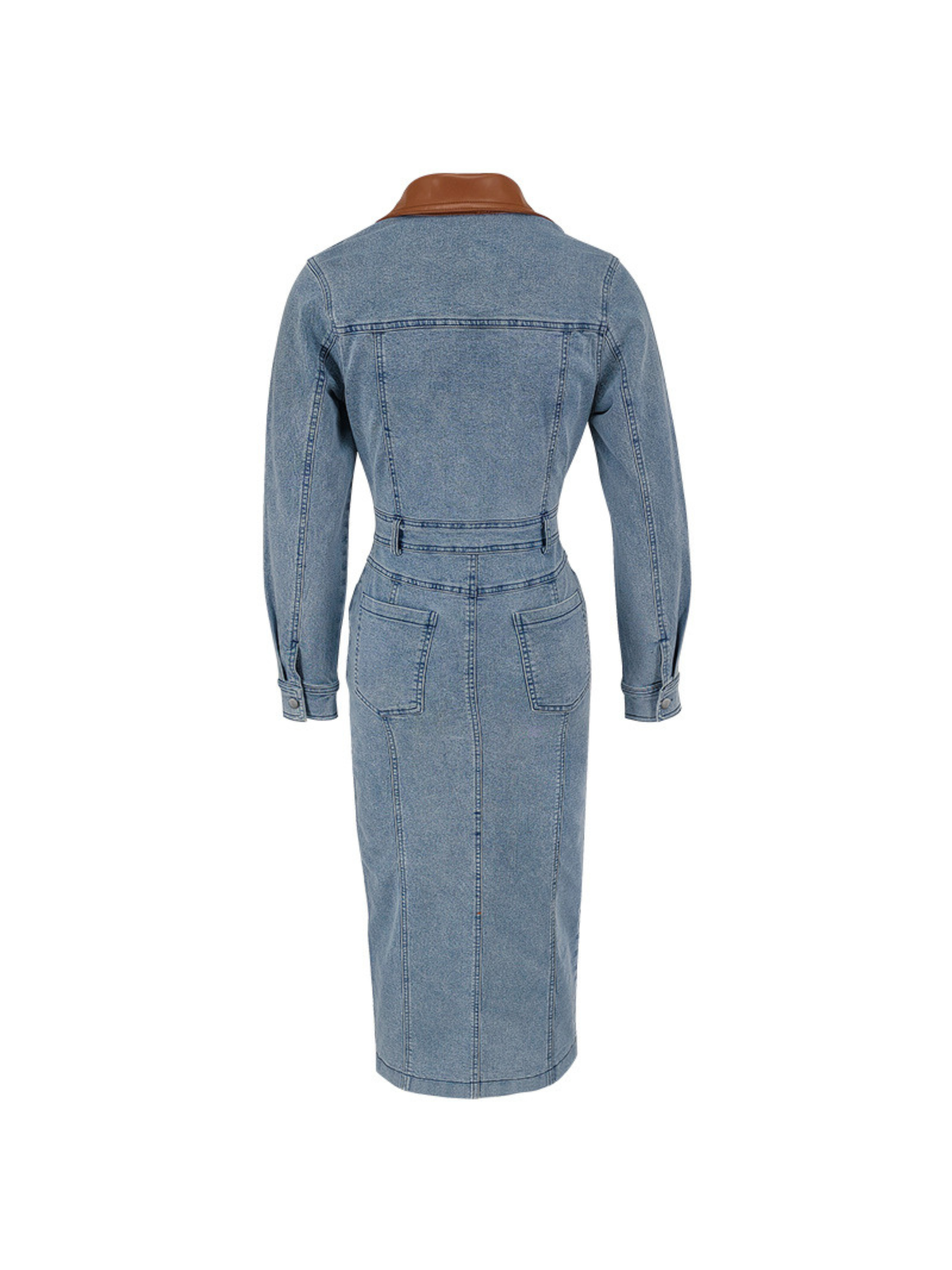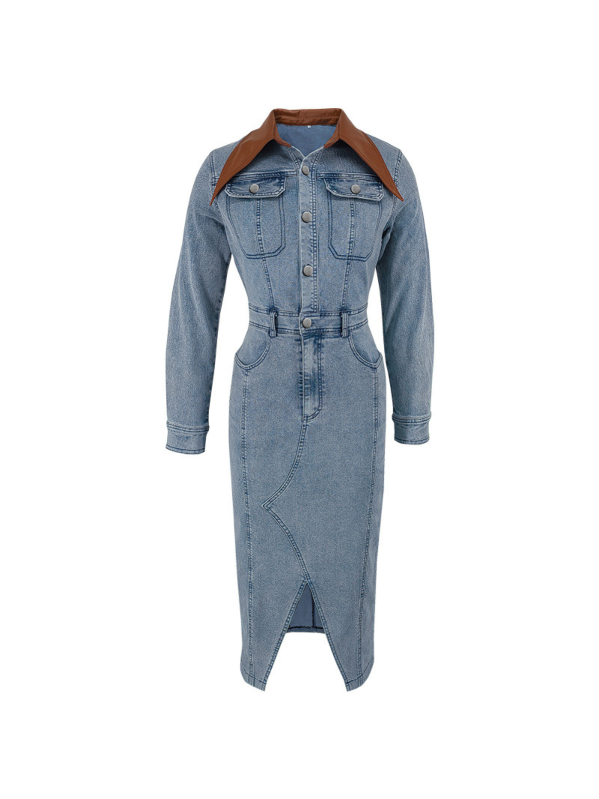 Elevate your wardrobe with the Plthar Folded Collar Split Midi Dress. designed for effortless elegance. The sophisticated...