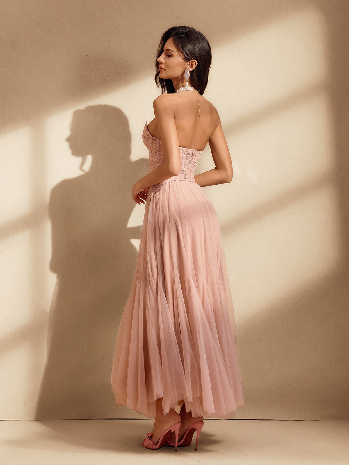 Qexara Strapless Lace Mesh Maxi Dress