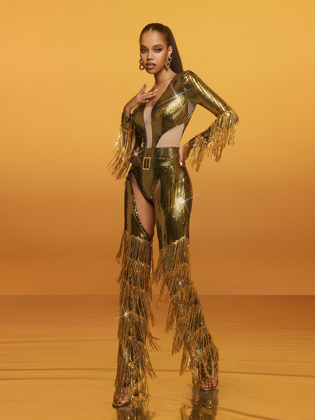 Step into the spotlight with the Relena Cutout Sequin Fringe Jumpsuit. Featuring dazzling sequins and stylish cutouts....