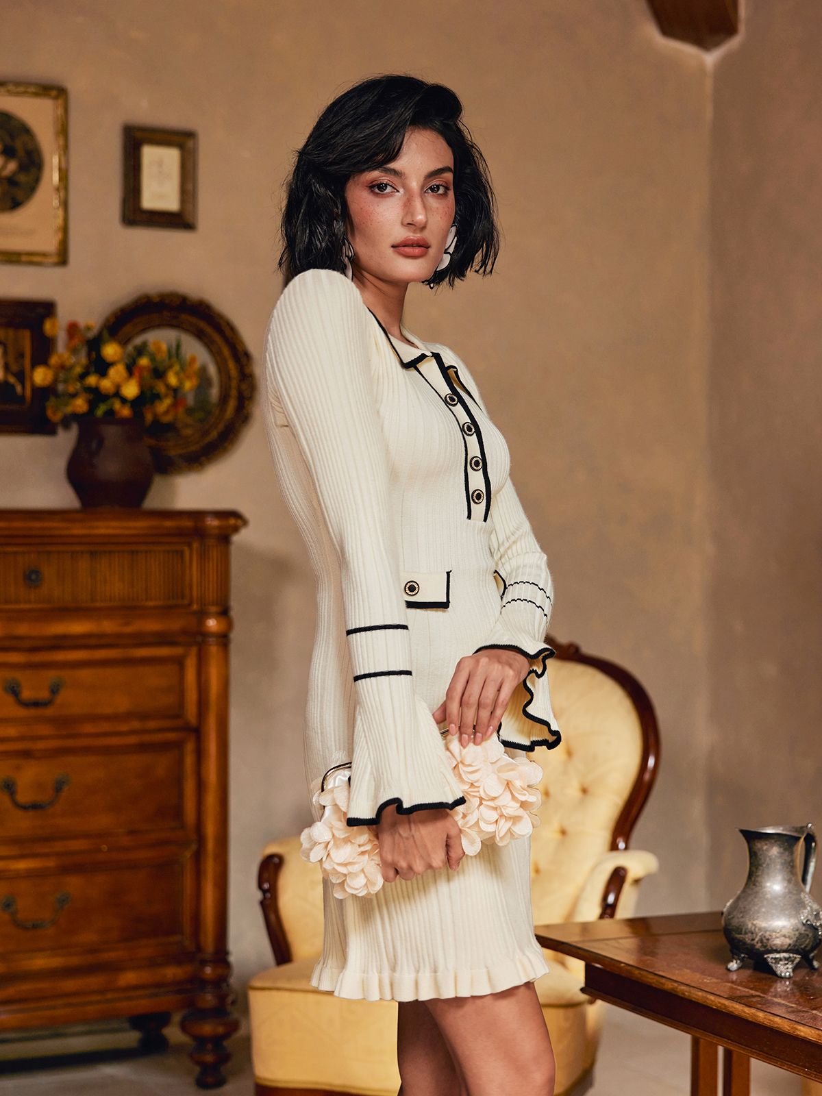 Shalita Long Sleeve Ruffle Button Knitted Mini Dress