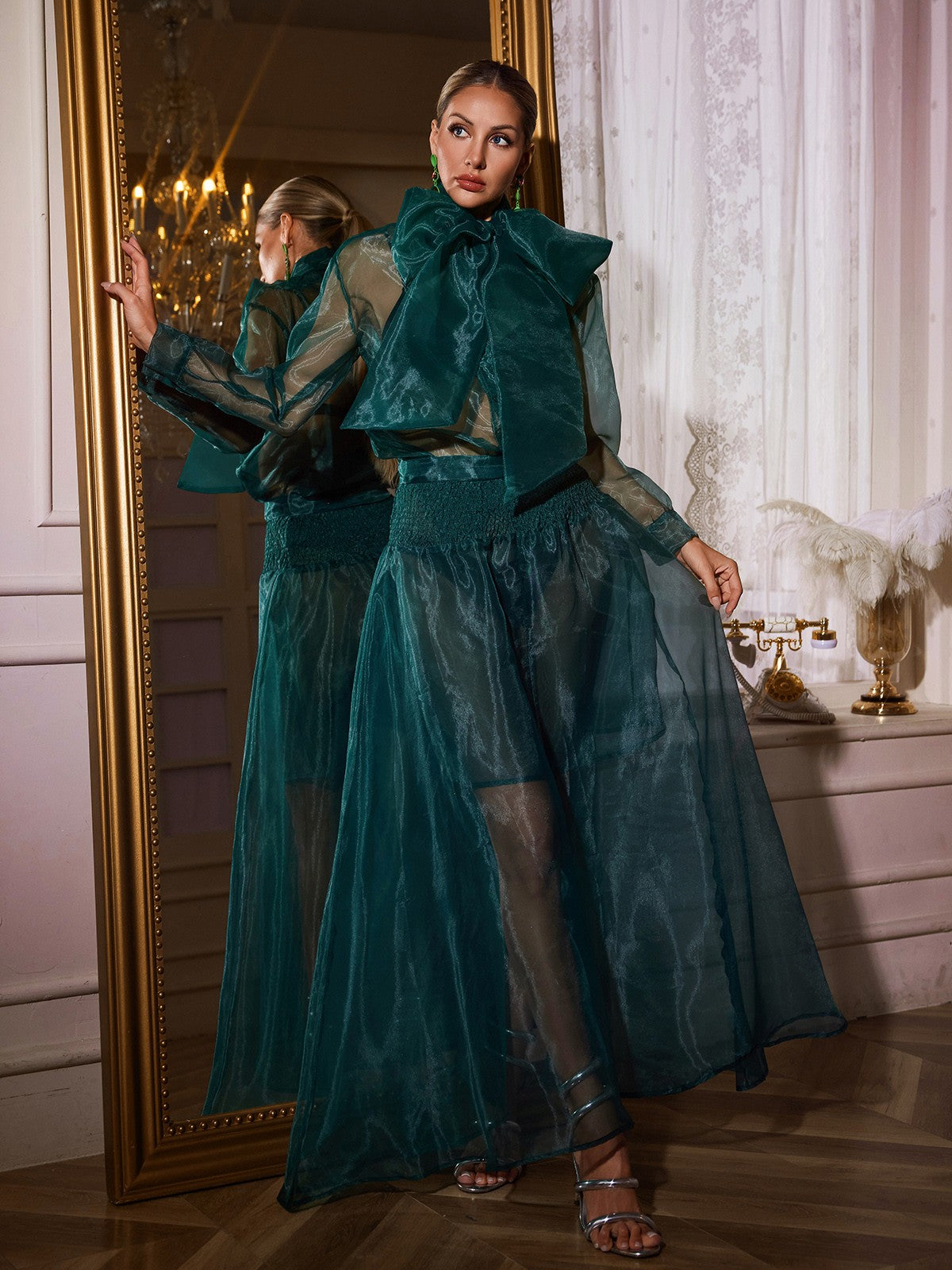 Uaelyvira Bow Mesh Skirt Set