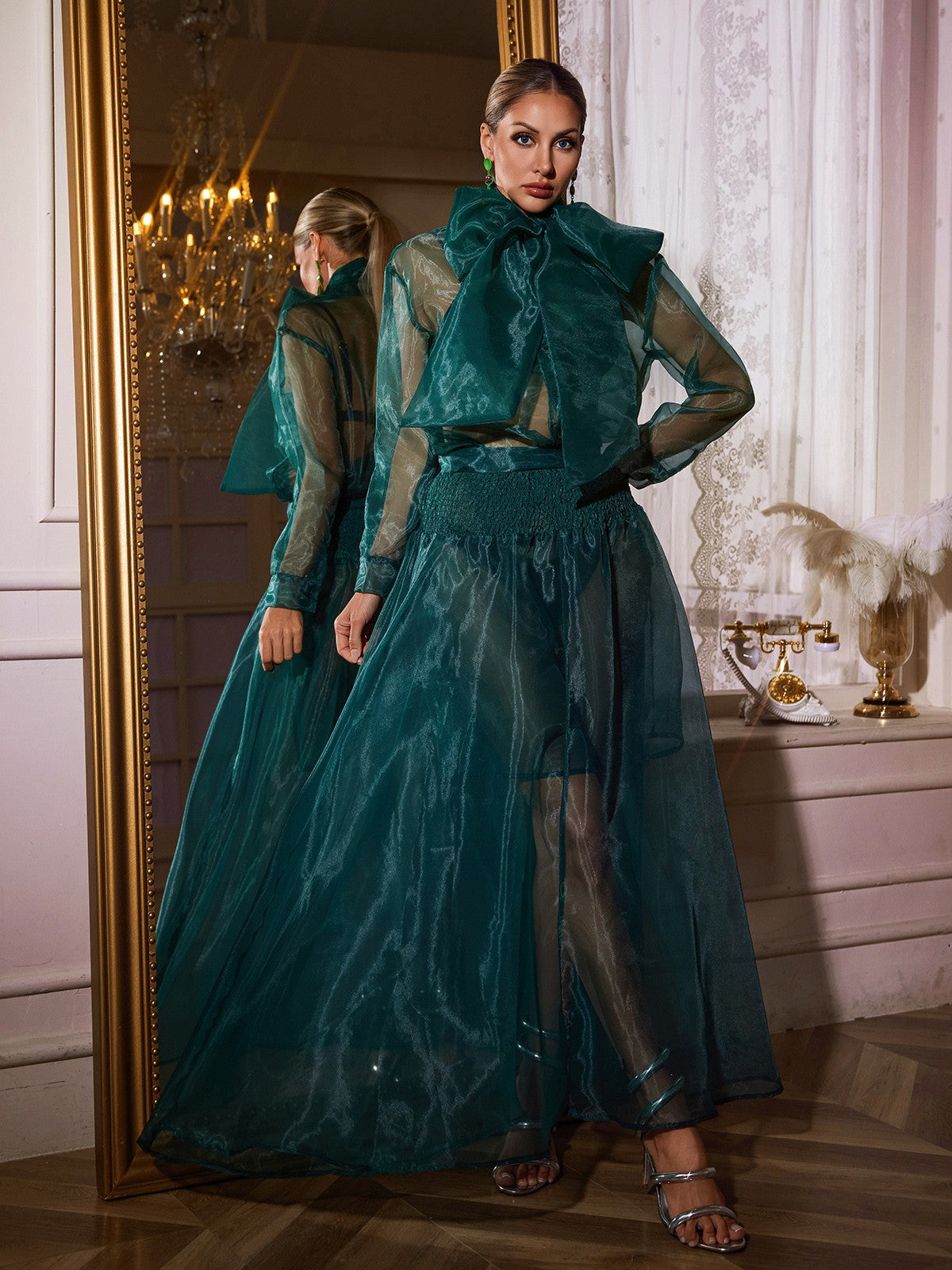 Step into effortless elegance with the Uaelyvira Bow Mesh Skirt Set. Featuring a delicate mesh skirt complemented...